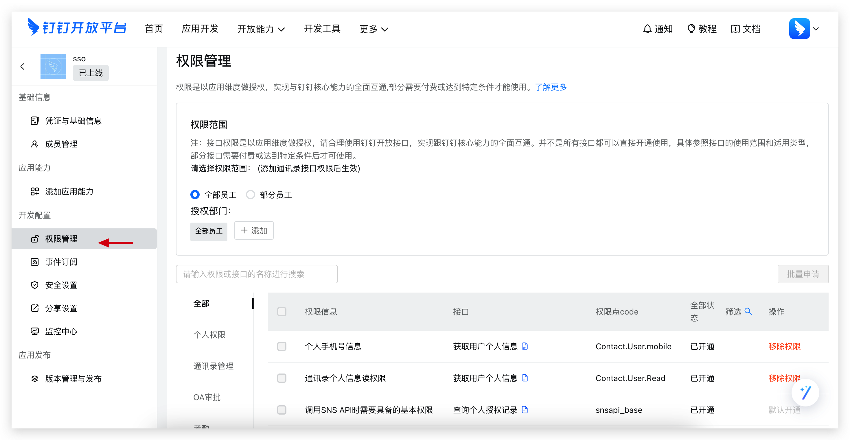 权限管理-数据权限中设置通讯录权限范围,并在API 权限中开通审批应用需要的权限。
