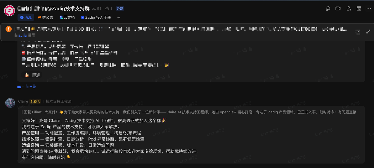 Claire 承担了 80% 的一线问题,把工程师时间释放出来做 20% 的复杂问题。