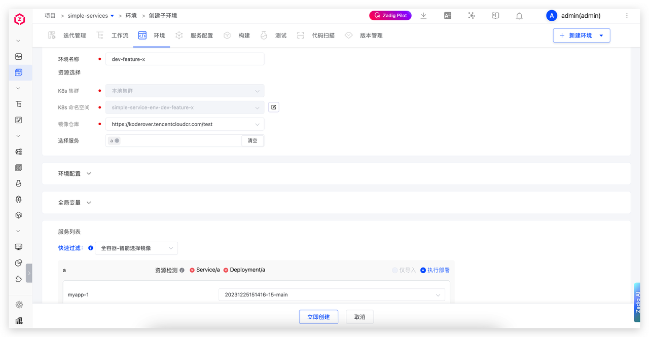 Zadig 自测模式正是为解决这些痛点而生。它允许团队基于一套稳定的基准环境,快速、低成本地创建仅包含变更服务的独立子环境,支持多人并行开发与测试,显著提升协同效率。