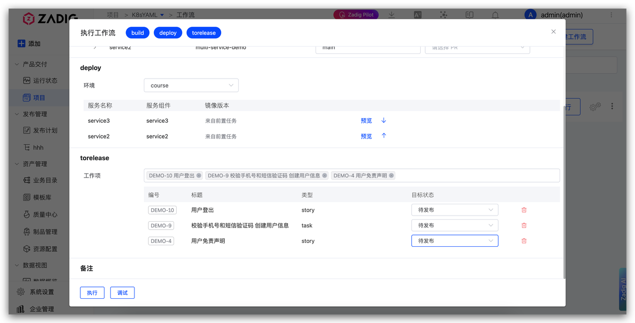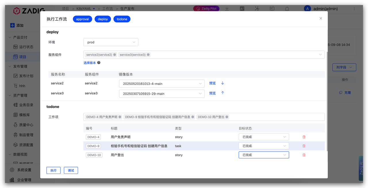 - 流程自动化: 需求状态随 Zadig 工作流阶段自动流转(如:开发中 -> 测试中 -> 待发布 -> 已完成),彻底告别手动更新。