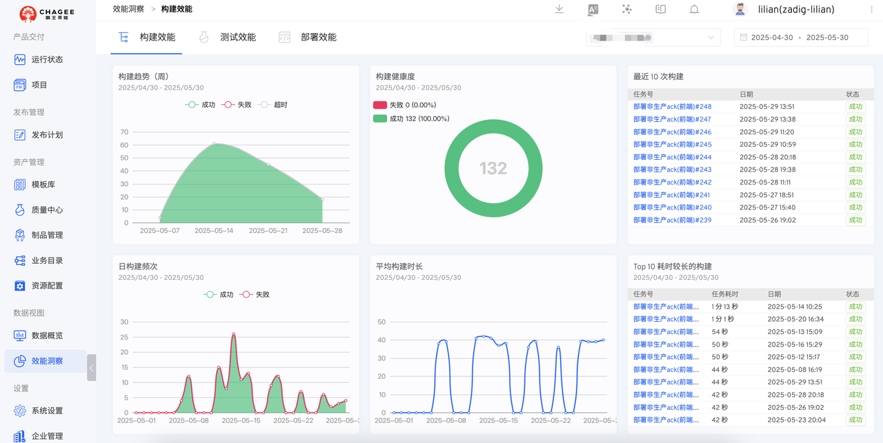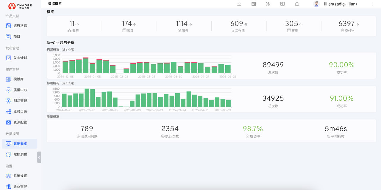 工程建设方面, 逐步集成 CI/CD、环境管理、灰度发布等能力,构建一体化 DevOps 平台。这一过程不是简单的工具堆砌,而是将产研规范内化于平台,使团队能够聚焦价值输出,同时沉淀全流程效能数据,实现数据驱动优化。