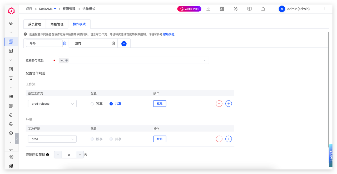 随着团队规模和业务地域的扩展,权限管理需求日益复杂。Zadig 支持 RBAC/ABAC 等多种权限模型,实现跨国团队之间的权限隔离与分级授权,既保障了协作效率,又有效降低了内部安全风险。