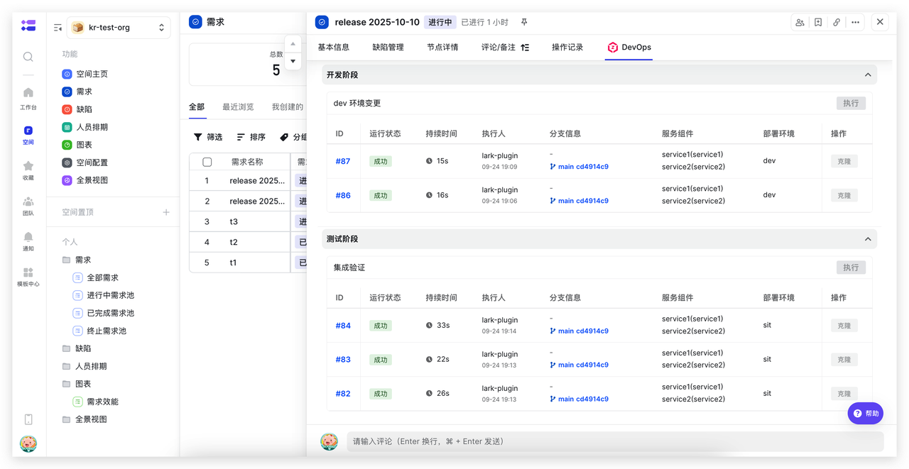 在软件开发中,需求管理和工程交付往往是割裂的。项目经理在飞书排期,开发人员提交代码,运维在工单系统发布——工具切换成本高,数据不同步,"需求做没做"和"代码发没发"成了两个孤岛。