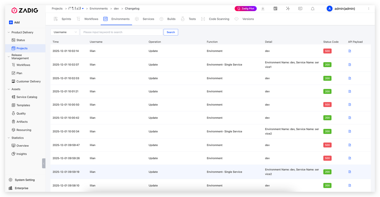- 扩展能力增强:新增文件类型变量,支持直接上传配置文件、证书等;飞书审批可添加抄送人员;Nacos 配置变更支持 Group 过滤,Apollo 配置变更支持关闭范围控制;工作流通知新增代码扫描结果,质量状态一目了然。
