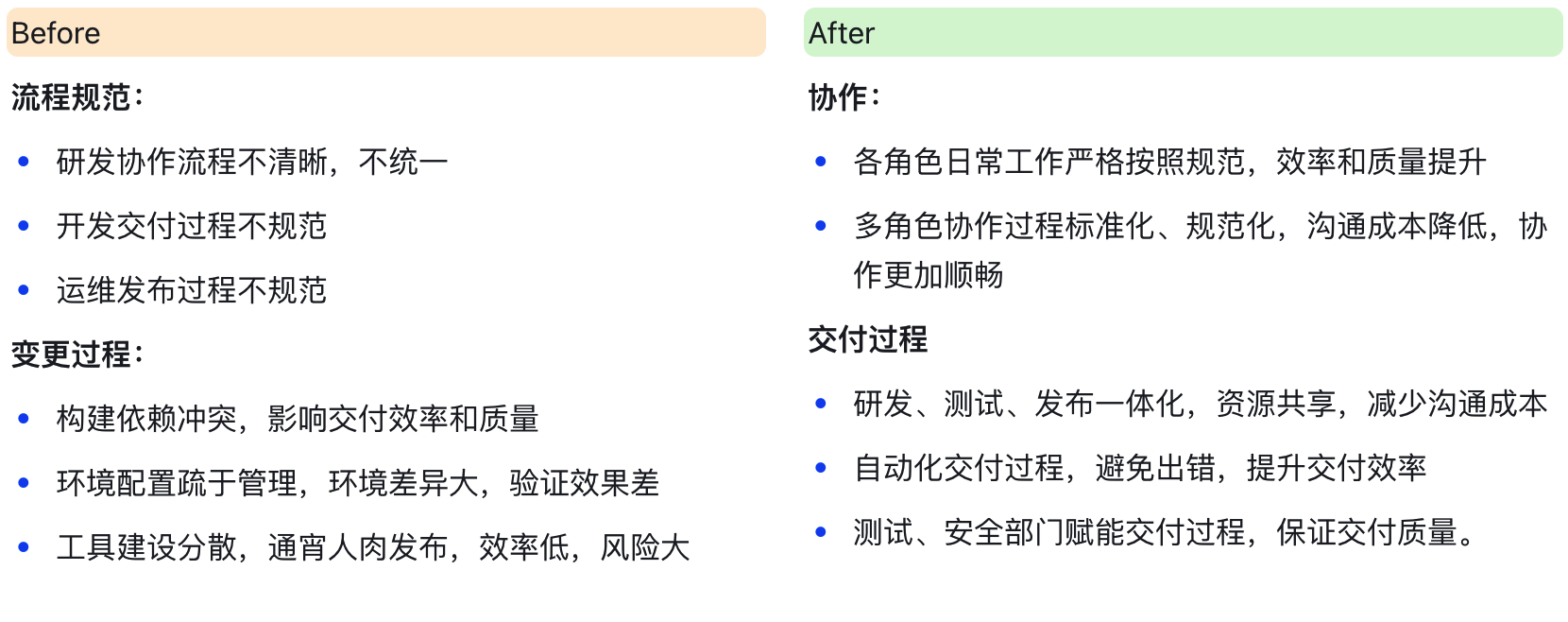 在协作层面,各角色日常工作严格按规范执行,效率和质量显著提升;多角色协作过程标准化、规范化,沟通成本降低,协作更加顺畅。